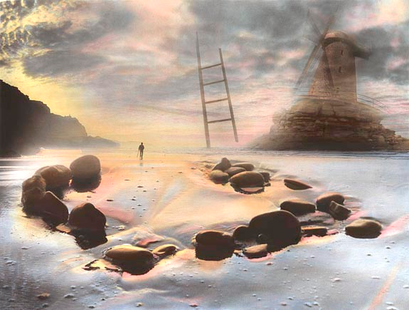 I think that anyone who starts working with montage will find their own 'path'... because their 'path' is the cumulative result of their negs, their 'design'.. and their use of techniques. I share alot with Uelsmann, but I take different sorts of negs. It looks like JU uses a tripod, stops down as far as possible, makes very sharp negs, 'Ansel Adam's' style.