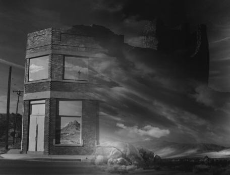 I had started shooting architecture on a 4x5 around 1982 in the Wash., DC area. Spring, summer, fall - that's when you do most of your work. No one wants to see anything covered in snow, so unless you have interiors to shoot? You are pretty much unemployed, hoping that what you saved from last year would last until the spring. At this point, I had a Beseler 45MXII with a cold light head, and many negs I had shot in previous years - various landscapes and street scenes. So with time on my hands, I gave it a throw, tried a montage.