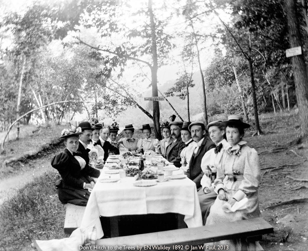 He portrayed his family in sometimes flattering light while also working with his club at their outings and lunches In what appears to be woods where a sign admonishes “Don’t tie horses to trees.” His camera club members liked to ham it up; sometimes another man appears with a plate on his head. Everybody is covered in clothing from head to toe and even at the beach the swimsuits cover bodies from neck to mid-calf for the men and from neck to ankle for the women. “Sexy” was not a term which applies to any of his pictures. One of the singular things about his life is that he enjoyed showing his likes and loves on film.