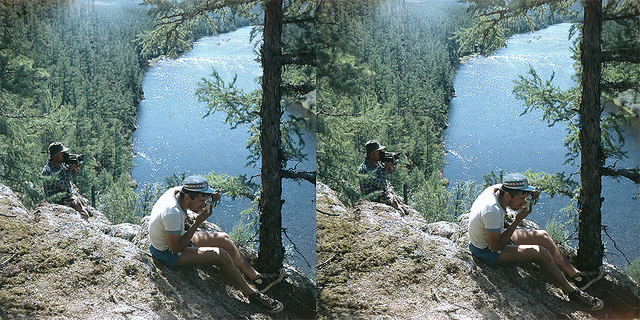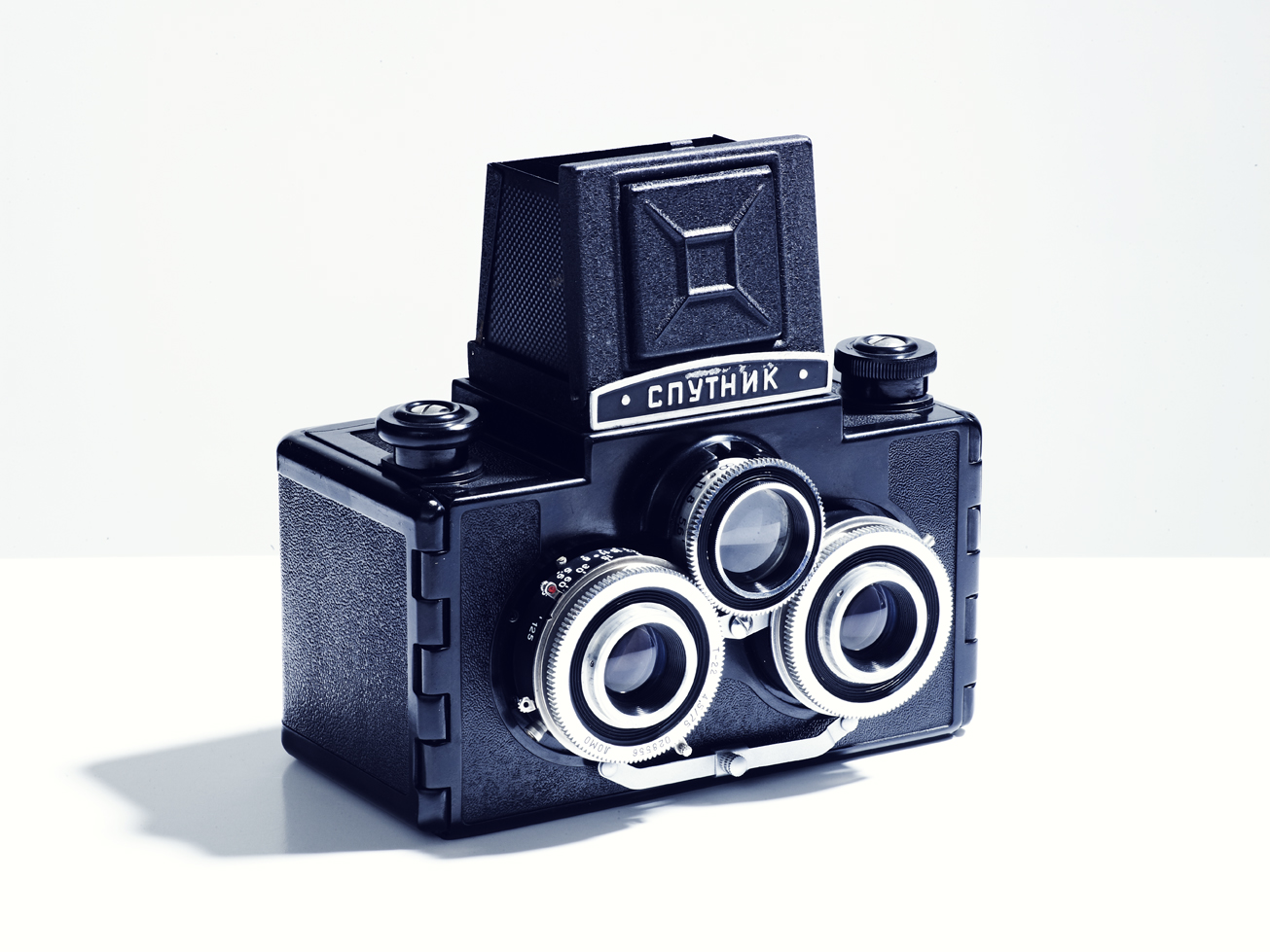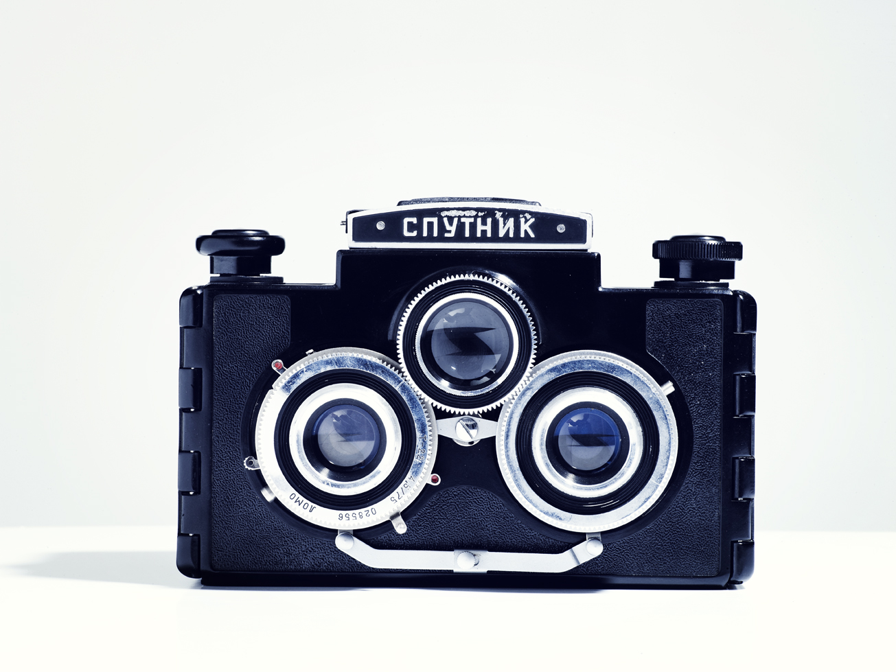 The Russian Sputnik (“Спутник“) was produced between 1954 and 1974 by GOMZ-LOOMP-LOMO in Leningrad (today St. Petersburg). It is a twin lens reflex stereo camera made from bakelite that was the only medium format stereo camera produced for the mass market and so it is fairly easy to find. It has now become a collector’s item but it is relatively affordable for those who want to try the technique on old fashioned kit.